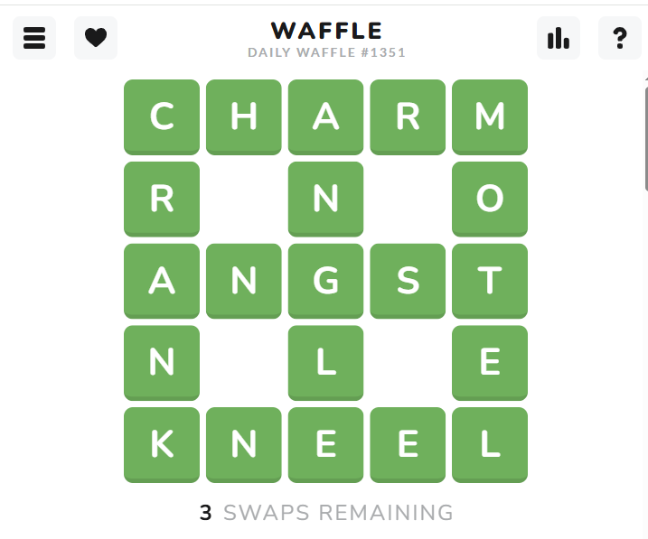 - Limited Moves: Players have a maximum of 15 moves to solve the Waffle, with the goal of solving all six words within this limit.